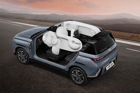 Prioritizing safety, the Hyundai VENUE N Line is built to add thrill to your ride while ensuring complete safety with features like 6 airbags, electronic stability control (ESC), brake assist system (BAS) and more..